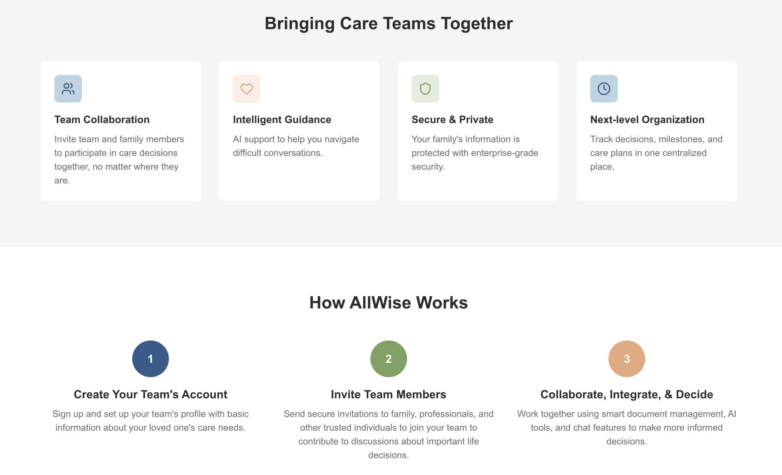 We built AllWise — a collaborative platform where families make care decisions together, guided by AI that facilitates rather than dictates. The platform is live at beallwise.com.